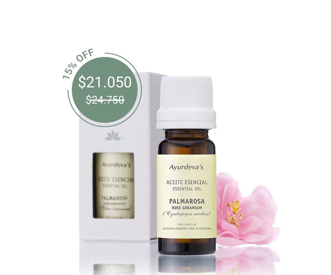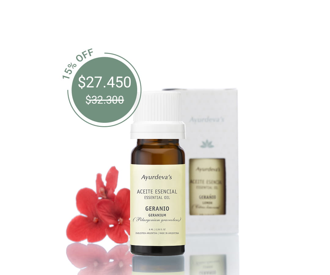 “Por excelencia es el aceite esencial recomendado para tratar hongos y verrugas. Uno de los pocos que pueden colocarse directamente sobre la piel. ”Geranio - Aceite esencial Ayurdeva´s-¡ PROMOCION!