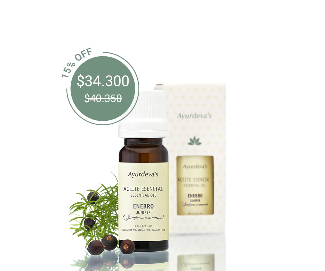 “Posee cualidades sedantes y relajantes, lo recomiendo en casos de nerviosismo, stress, exceso de responsabilidades y pensamientos obsesivos.”Enebro - Aceite esencial Ayurdeva´s-¡PROMOCION!