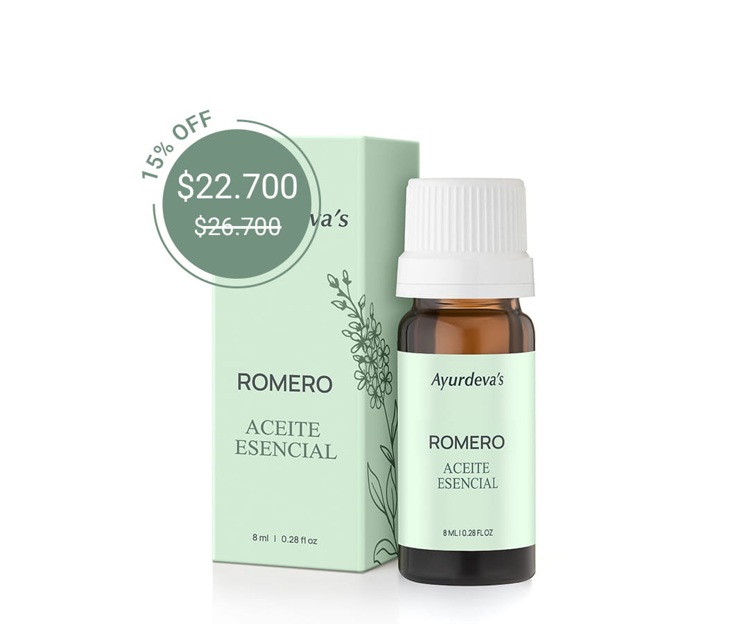 “Es el aceite por excelencia para aliviar dolores de cabeza y para ayudarnos en toda actividad que requiera un fuerte esfuerzo mental. ¡Lo uso mucho cuando deseo ordenar algo y no sé por dónde empezar!”Romero - Aceite esencial Ayurdeva´s-¡PROMOCION!